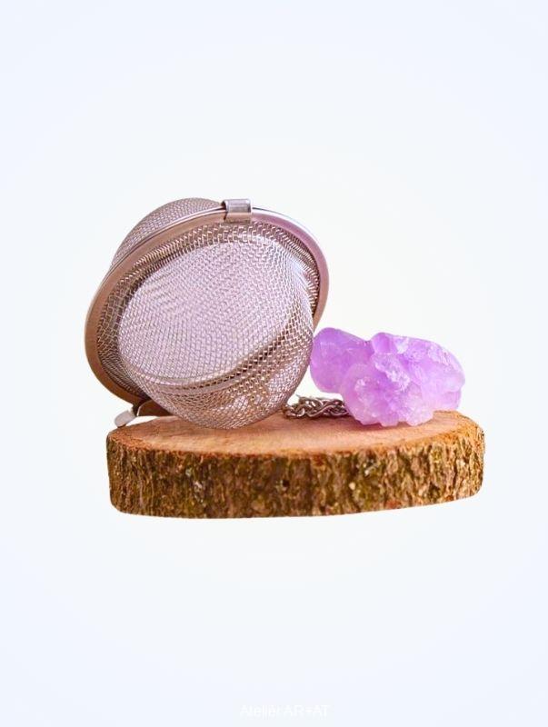 Tea infuser with a natural crystal – round stainless steel infuser with chain and raw gemstone for loose-leaf tea and herbs