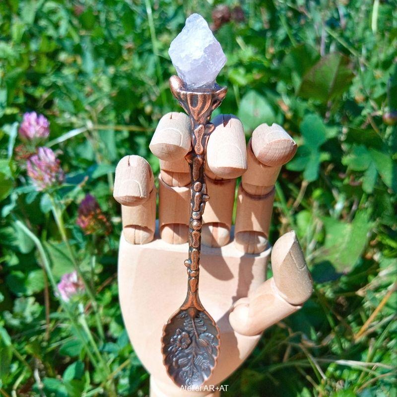 Čajová bronzová lžička s přírodním růženínem