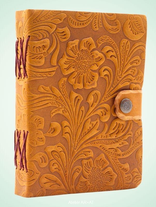 Květinový deník - kožený zápisník s ražbou a zapínáním