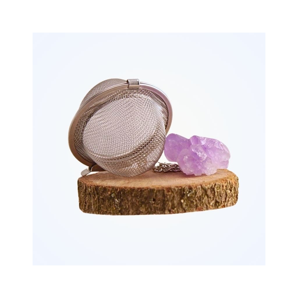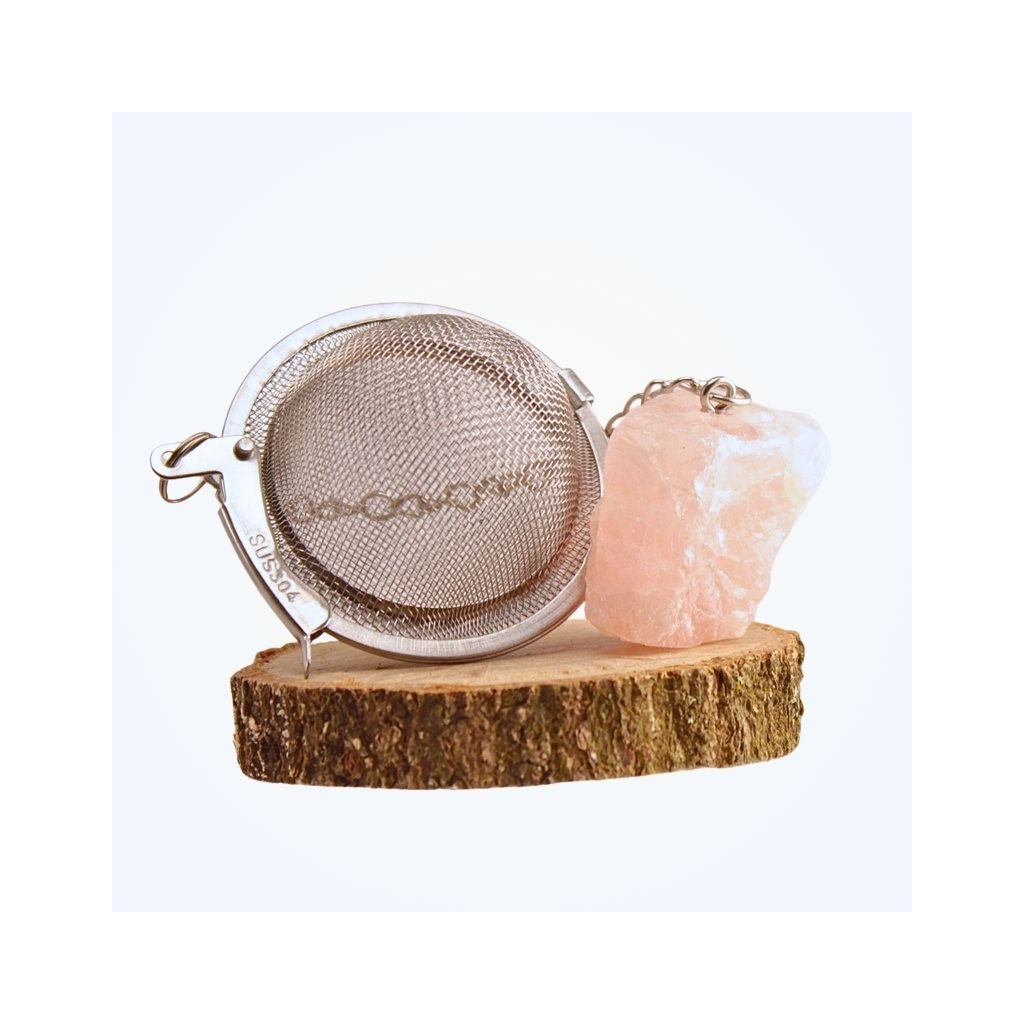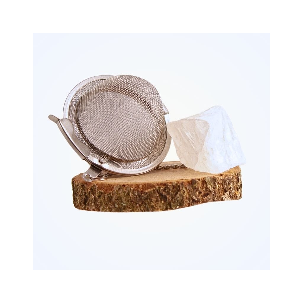 Nerezové sítko ve tvaru koule je určeno pro sypané čaje i kořeněné směsi. Na konci jemného řetízku se třpytí surový krystal, který sítko přirozeně zatíží - a posílí Tvůj šálek energií radost, uvolnění a vědomé přítomnosti.