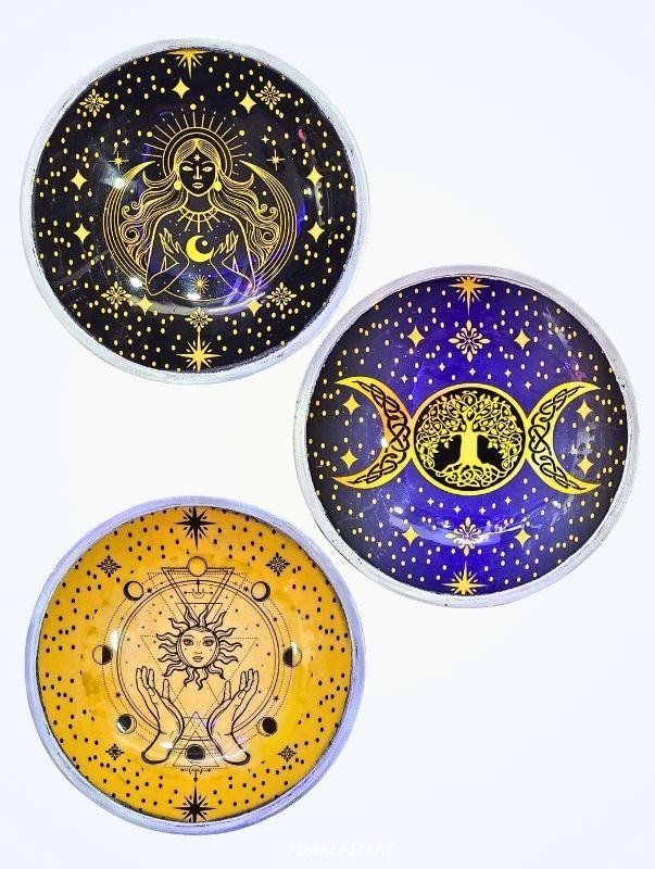The open hands carry the energy of the 4th Heart Chakra, while the yellow glow of the plate awakens the power of the 3rd Solar Plexus Chakra Manipura and the Fire element. This ritual plate supports your determination to take your happiness into your own hands and let your inner Sun shine at full strength.