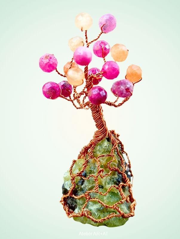 Strom Života s rubínem, aventurínem a českým peridotitem – miniaturní Stromeček Štěstí Podzim Olivínu