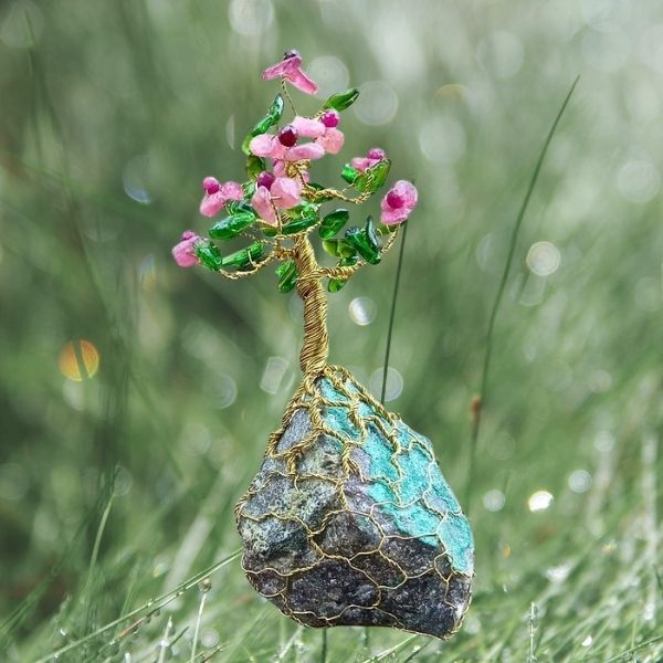 Tento semenáček Stromu Života čerpá sílu elementů Země, Dřeva, Ohně, Kovu i Éteru. Svou kombinací barev a minerálů podporuje energetický systém čaker: