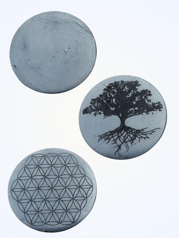 Destička pochází z přírodního šungitu z oblasti Karélie, Rusko.