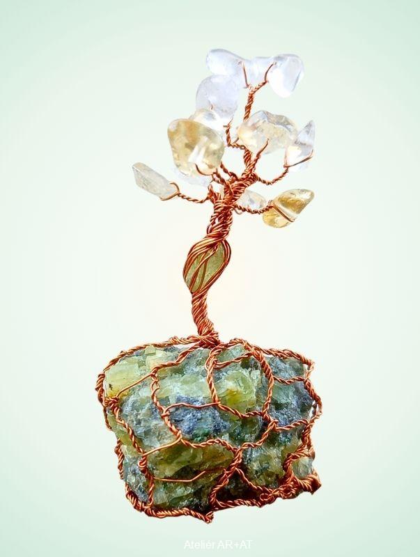 Strom Života s citrínem, olivínem a českým peridotitem – miniaturní Stromeček Štěstí Úsvit Olivínu