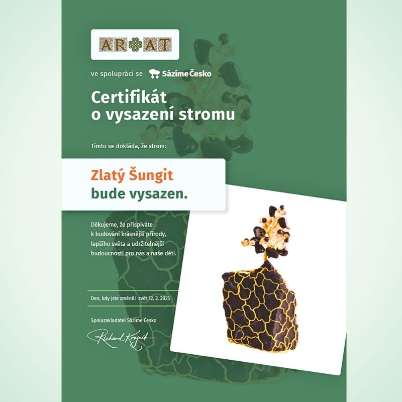 Zlatý Šungit je propojený s českou přírodou i skrze své Stromové dvojče v karlovarských lesích (více se dozvíš v části o výsadbě).
